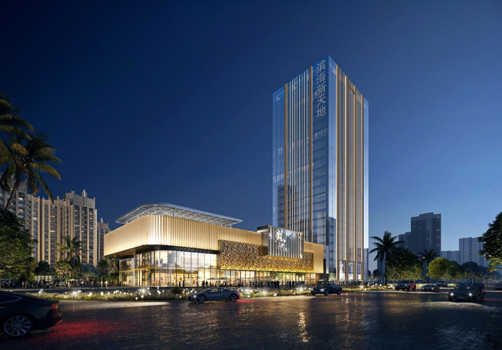 中國電建大灣區科創中心基地位于廣東省廣州市花都區,是由中電建(廣州)城市投資發展有限公司投資開發建設。該項目幕墻形式主要包括玻璃幕墻、鋁板幕墻等,總建筑面積約為62000平方米,幕墻面積38000平方米,建筑高度為162 1米。該項目是一棟超高層辦公樓,建成后將打造成為具備總部基地的地標性建筑。??跒I海新天地商業綜合體 位于海南省??谑校怯?